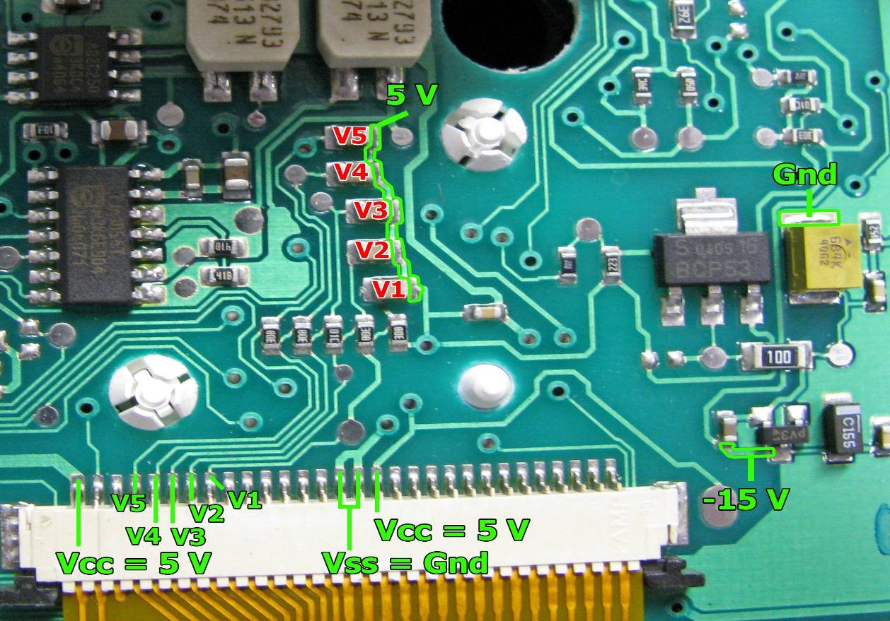 - Εσωτερικό κύκλωμα πολλαπλών τάσεων πόλωσης (V1–V5) για σωστή αντίθεση LCD.